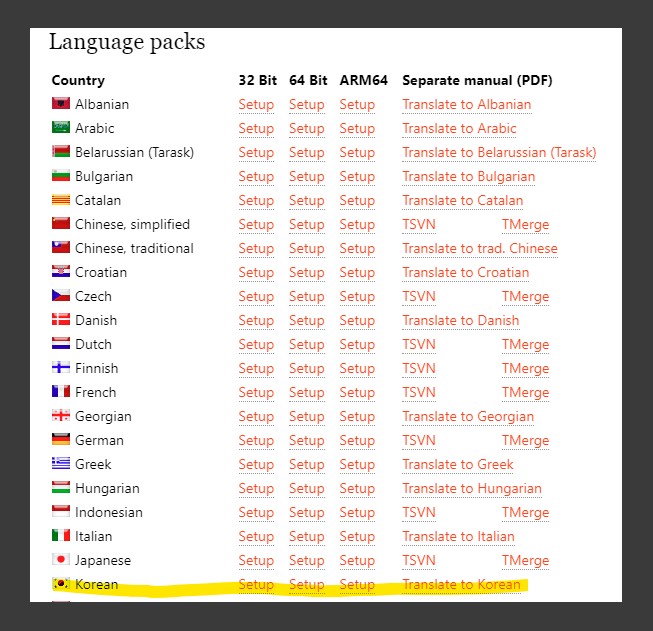 상기의 url을 클릭하면 설치가능합니다. 사이트의 하단을 보게 되면 언어팩을 다운 받으 실 수 있습니다.