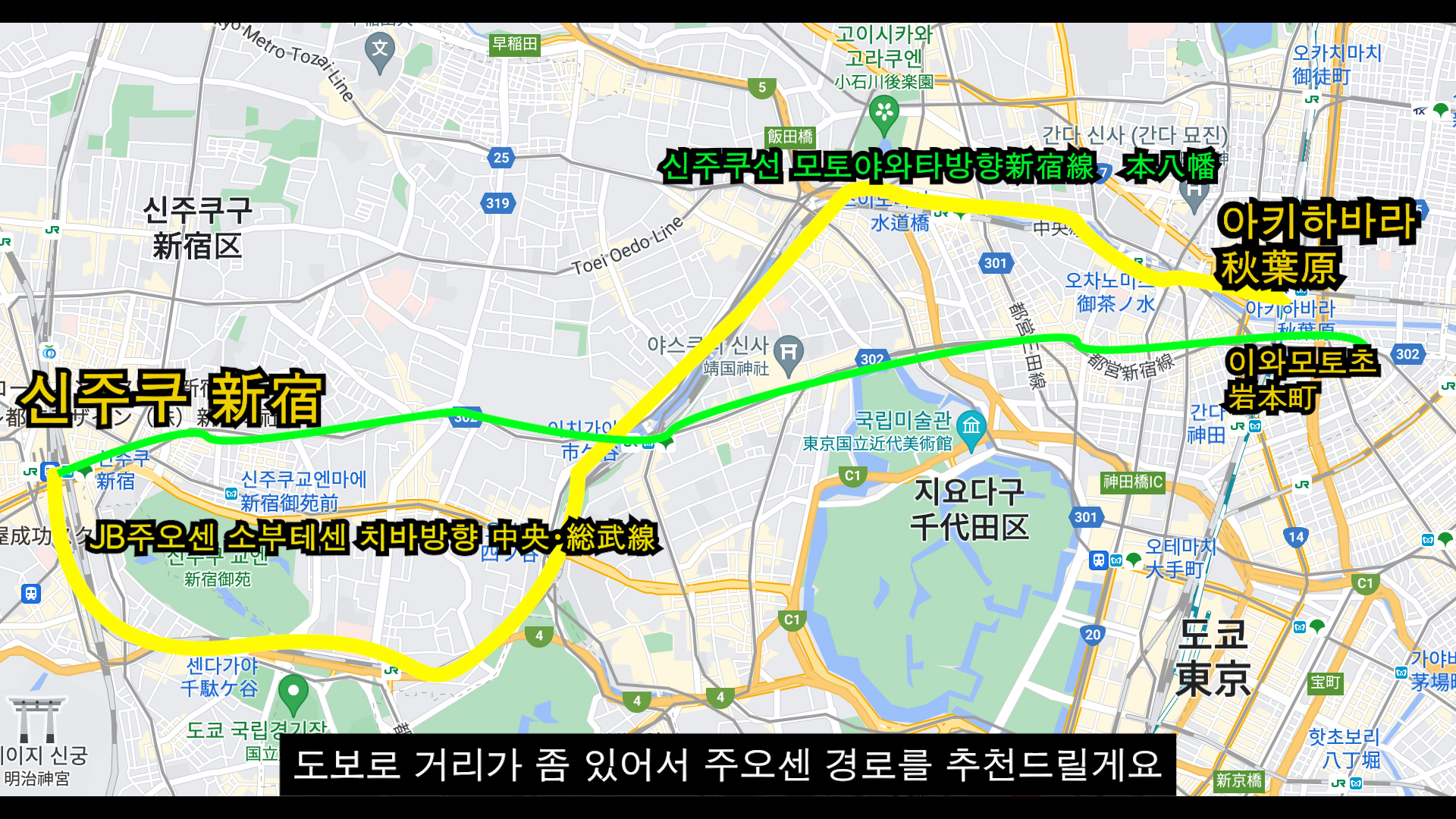 도보로 거리가 쫌 있어서 주오센 경로를 추천드릴게요